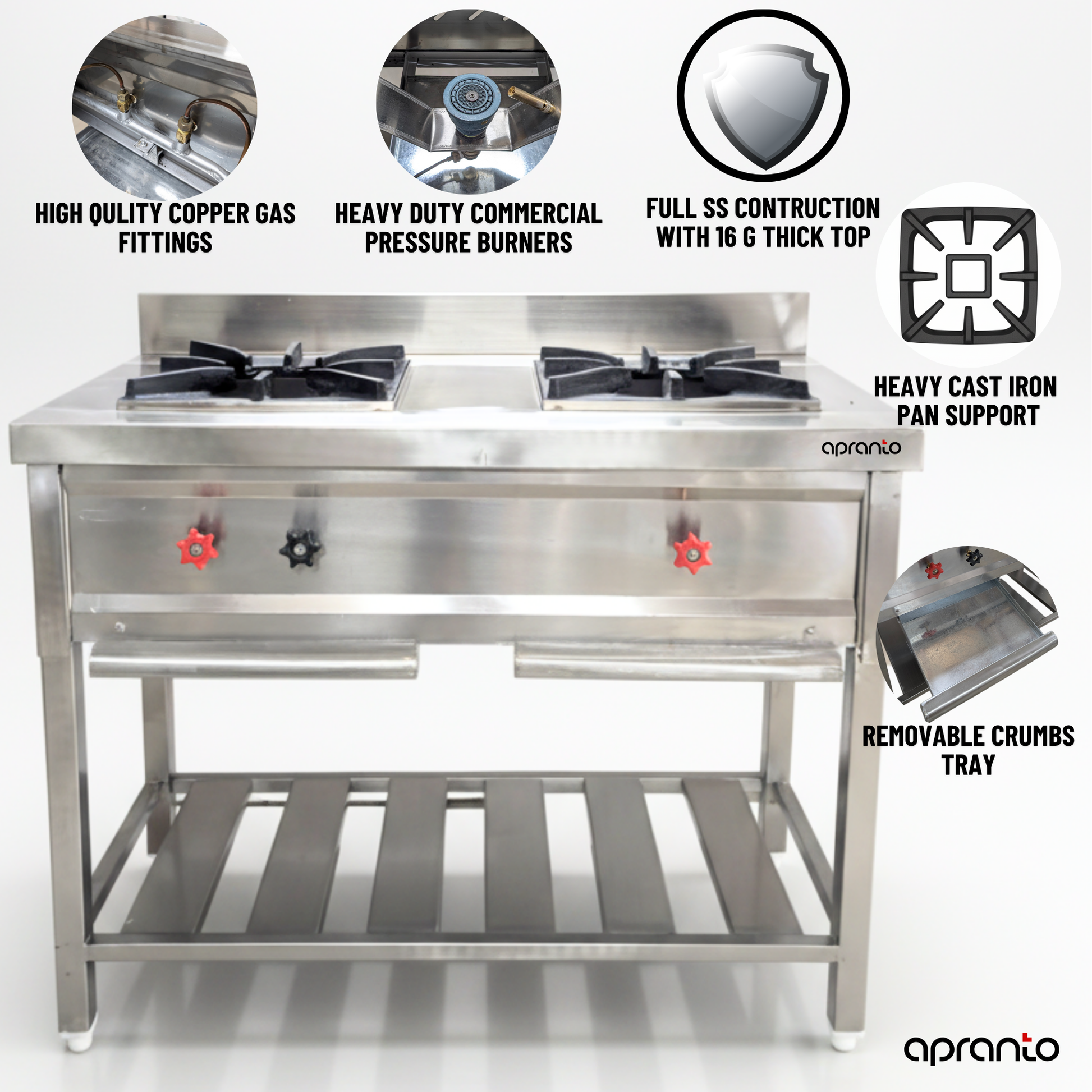 - High-Performance Pressure Burners: Two heavy-duty Indian burners designed for high-flame cooking and energy efficiency.